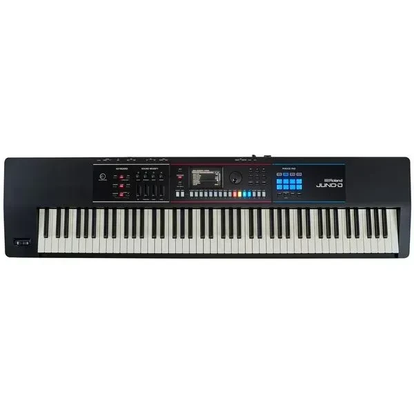 Roland JUNO-D8 — це професійний синтезатор з 88 зваженими клавішами PHA-4, що імітують відчуття гри на піаніно. Він обладнаний потужним звуковим двигуном ZEN-Core, який пропонує понад 3800 готових звуків, включаючи акустичні та електронні піаніно, синтезатори, органи та оркестрові інструменти. Завдяки малій вазі (14,5 кг) і можливості живлення через USB-C, JUNO-D8 легко транспортувати та налаштовувати для концертів і роботи в студії.